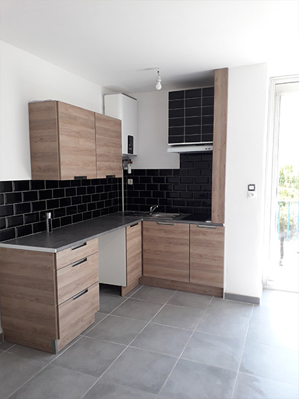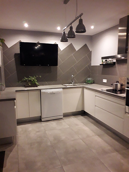 Nous intervenons aussi pour vos cuisines avec des crédences ou plan de travail carrelé aussi bien assorties à vos sols qu’à vos meubles.