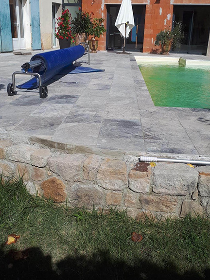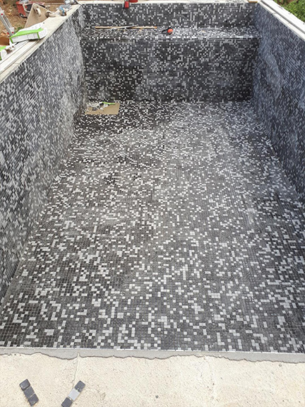 Piscine: pâte de verre, émaux de verre, Pierre dure ou tendre, ainsi que la pierre de parement.