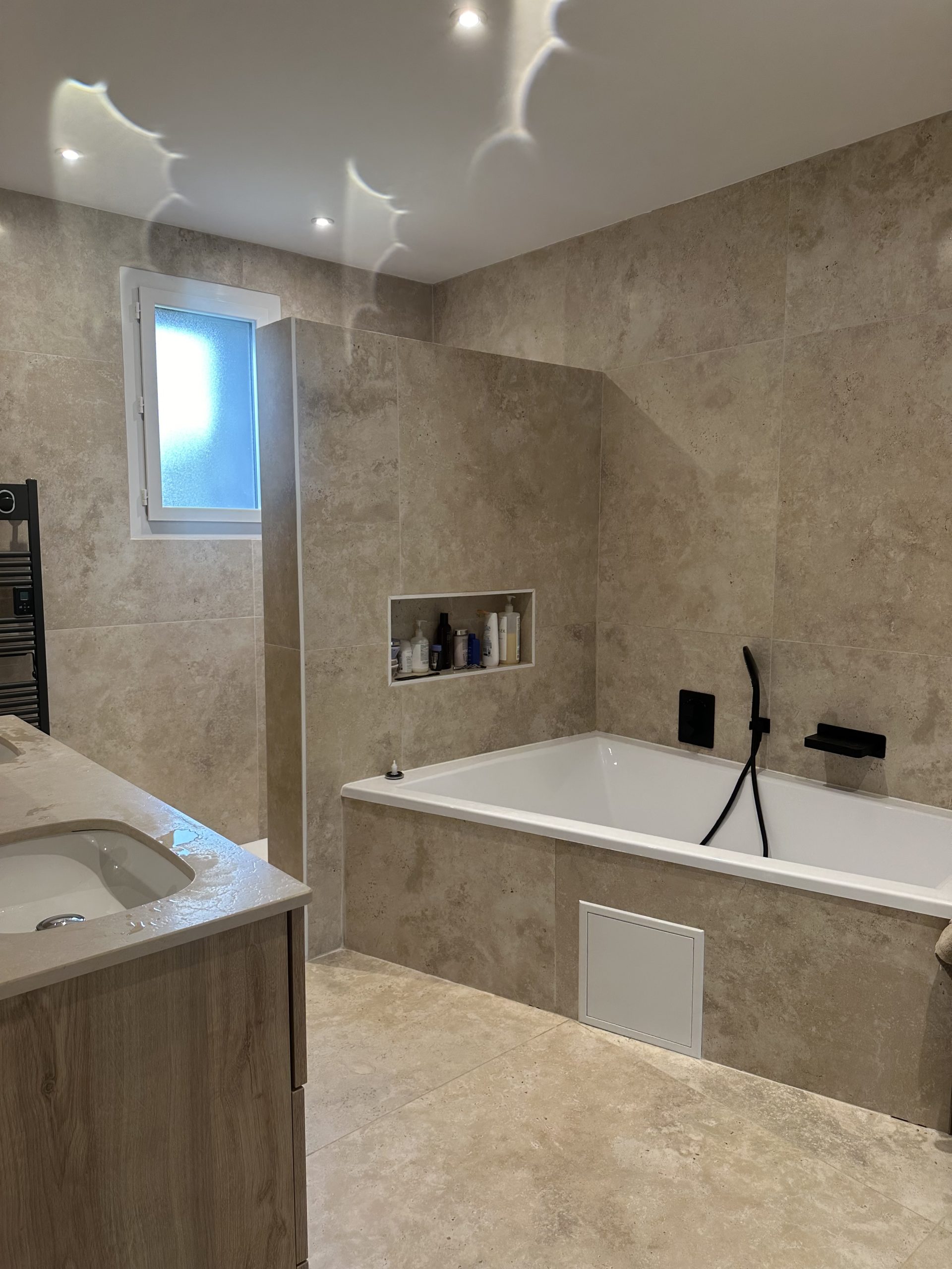 Equipe spécialisée pose tout type de carrelage à votre service, Réalisation de tout type de salle de bains et carrelage de l’extérieur.